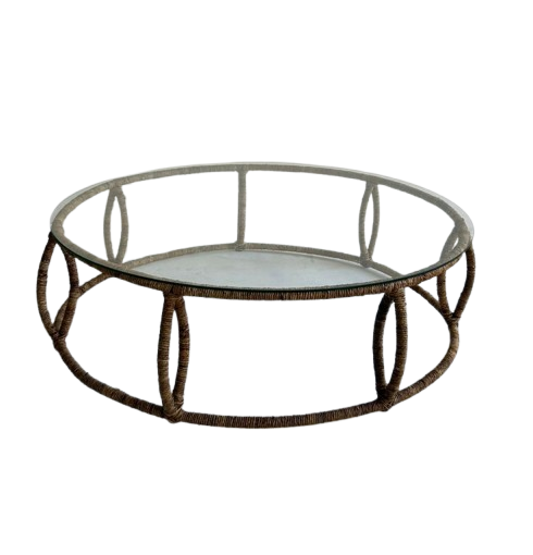 Mesa centro redonda c/vidro Fibra de Banana Natural 1.00D
